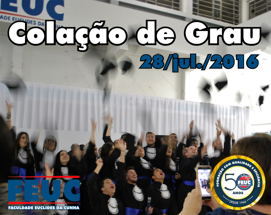 A Faculdade de Filosofia, Ciências e Letras de São José do Rio Pardo – Faculdade Euclides da Cunha FEUC, realizou no dia 28 de julho, a solenidade de colação de grau dos formandos do 1º semestre de 2016 dos cursos de ARTE, DESENHO E PLÁSTICA, CIÊNCIAS, EDUCAÇÃO ARTÍSTICA, EDUCAÇÃO FÍSICA LICENCIATURA, EDUCAÇÃO FÍSICA BACHARELADO e LETRAS (Habilitação Português e Inglês).